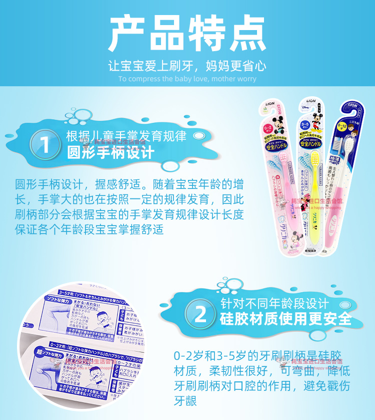 Japanese Lion King Imported Infant Toothbrushes 0-2-3-6-12-year-old Mickey Baby Milk Toothbrush Soft Hair 1 Support