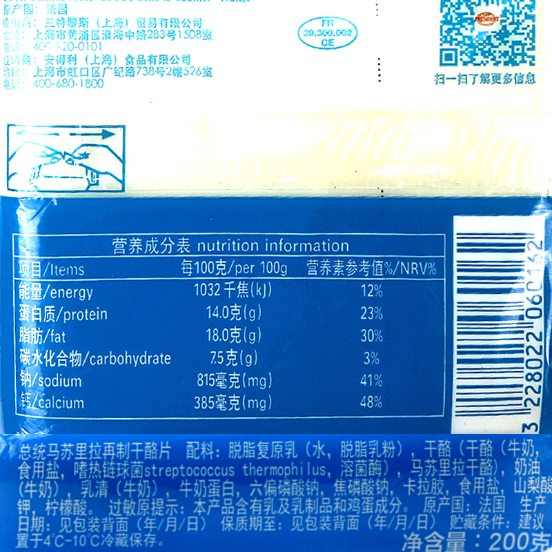 President Mozzarella cheese slices 200g ready-to-eat cheese slices Pizza sandwich Instant noodles Breakfast baking home