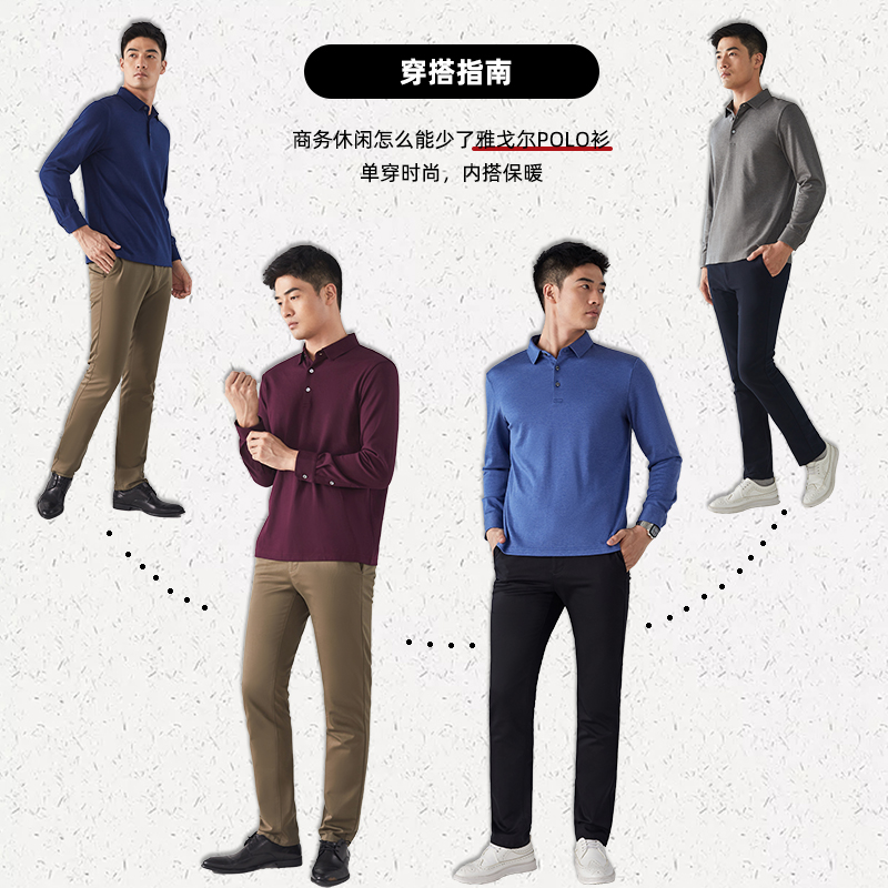 Yagal fall men's long sleeves T-shirt business casual turnover Tide Pure wool to bottom polo shirt 2880
