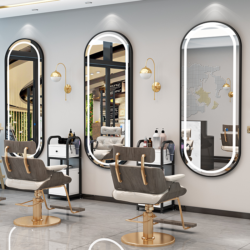 Hairdresse Shop Mirror Desk Net Red Tides Shop Beauty Hair Lens LED Touch with lamp Jane about hair hanging wall Clippings Haircut Mirror Single-sided Mirror