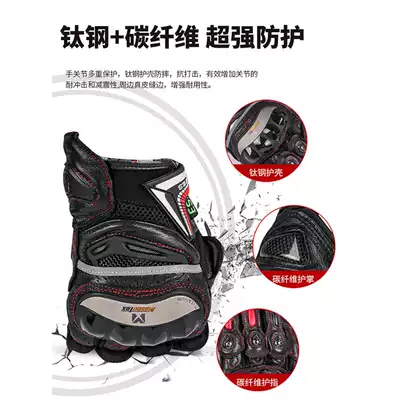 Masontex Locomotive Gloves Titanium Alloy Shell Carbon Fiber Riding Locomotive Anti-fall Leather Breathable Touch Screen