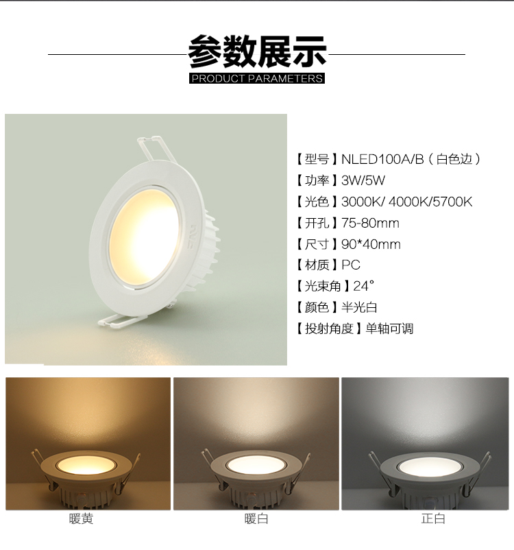 NVC Lighting LED Spotlight 8cm 3W5W7W Living Room Bedroom Aisle Ceiling Hole Light NLED100A B C