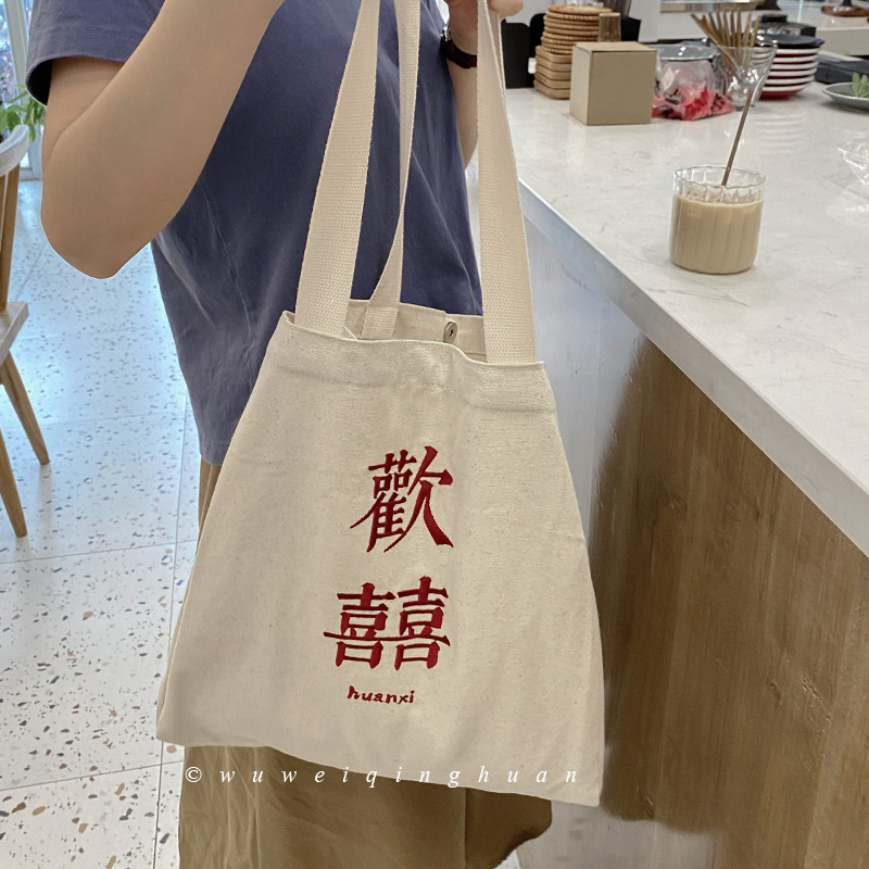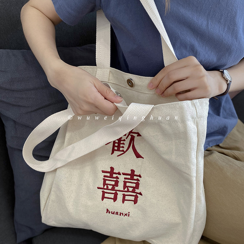 Art Embroidery Sail Bag often happy Day style Lazy Living Single Shoulder Bag Carry-on Cloth Bag