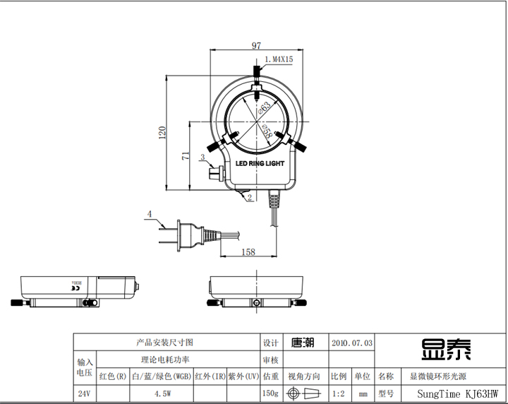 Universal Ring LED Light Source KJ63HWLED White Light Source for Taiwan Xiantai Digital Film Microscopy