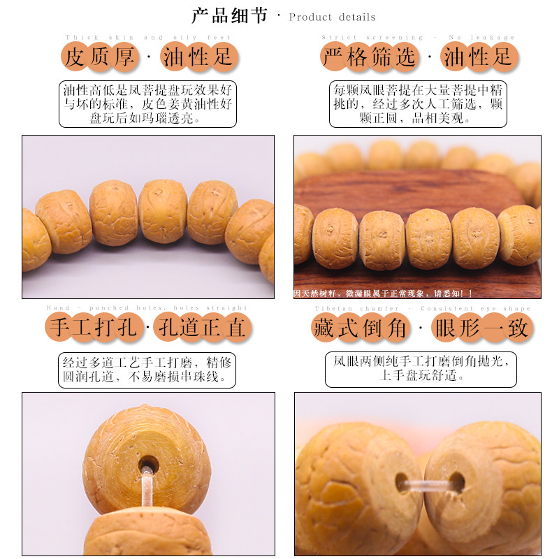 Nepalese yellow skin Tibetan-style phoenix-eyed Bodhi seed single-circle bracelet hand-held men and women text play Buddhist beads rosary bracelet