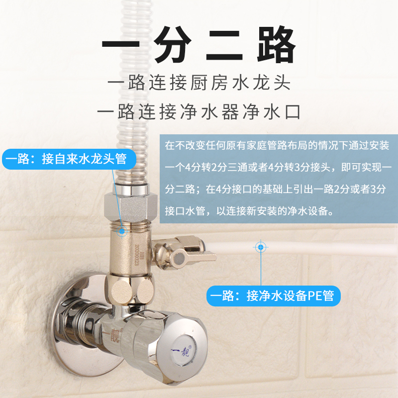 Water purifier tee joint ball valve water pipe quick to pick up 4 minute turn 2 water dispenser water inflow water splitting valve accessories Grand total