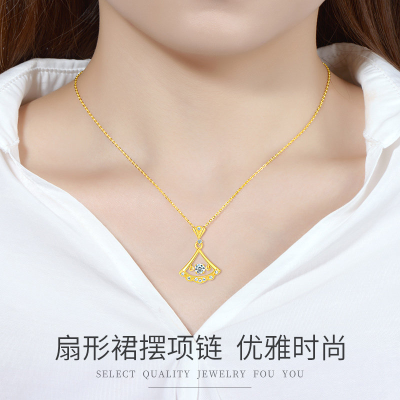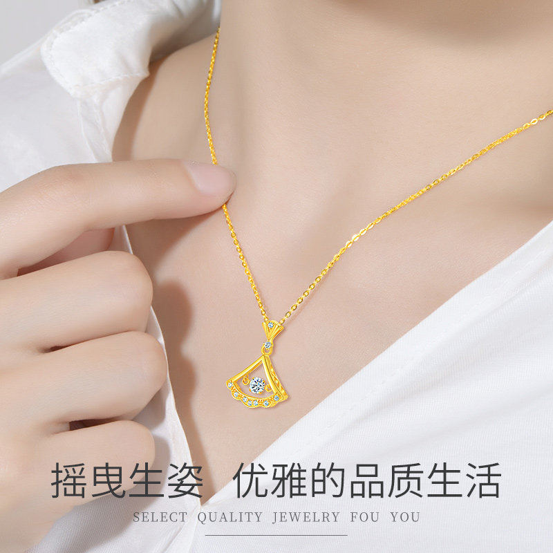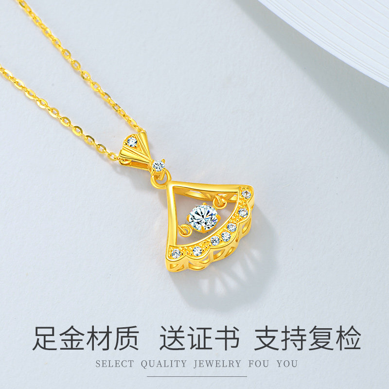 Gold neckladies 24K pure gold pendant new light luxury Valentine's Day gift to girlfriend 999 foot gold fan shape