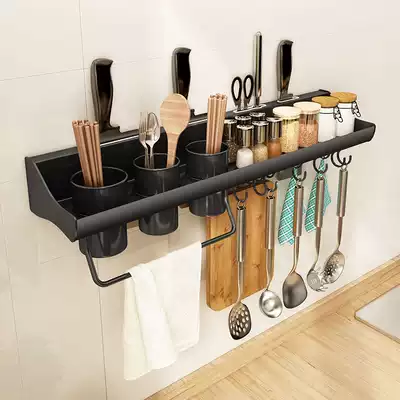 Kitchen non-perforated knife holder multi-function adhesive hook storage wall-mounted knife chopsticks integrated chopsticks cage space aluminum storage layer shelf