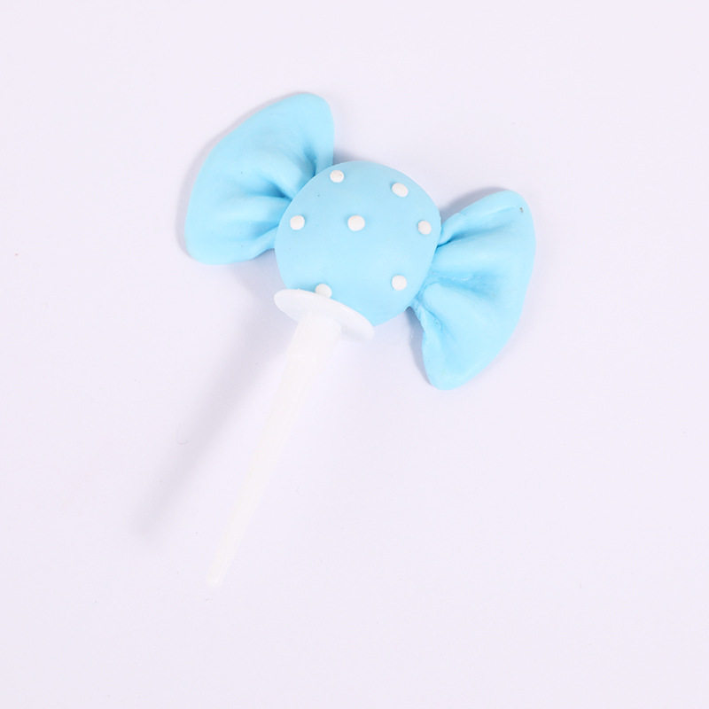 Soft Pottery Candy Cake Decoration Plug-in Butterfly Knots Candy Pink Yellow Blue Birthday Party Sweet Table Dress