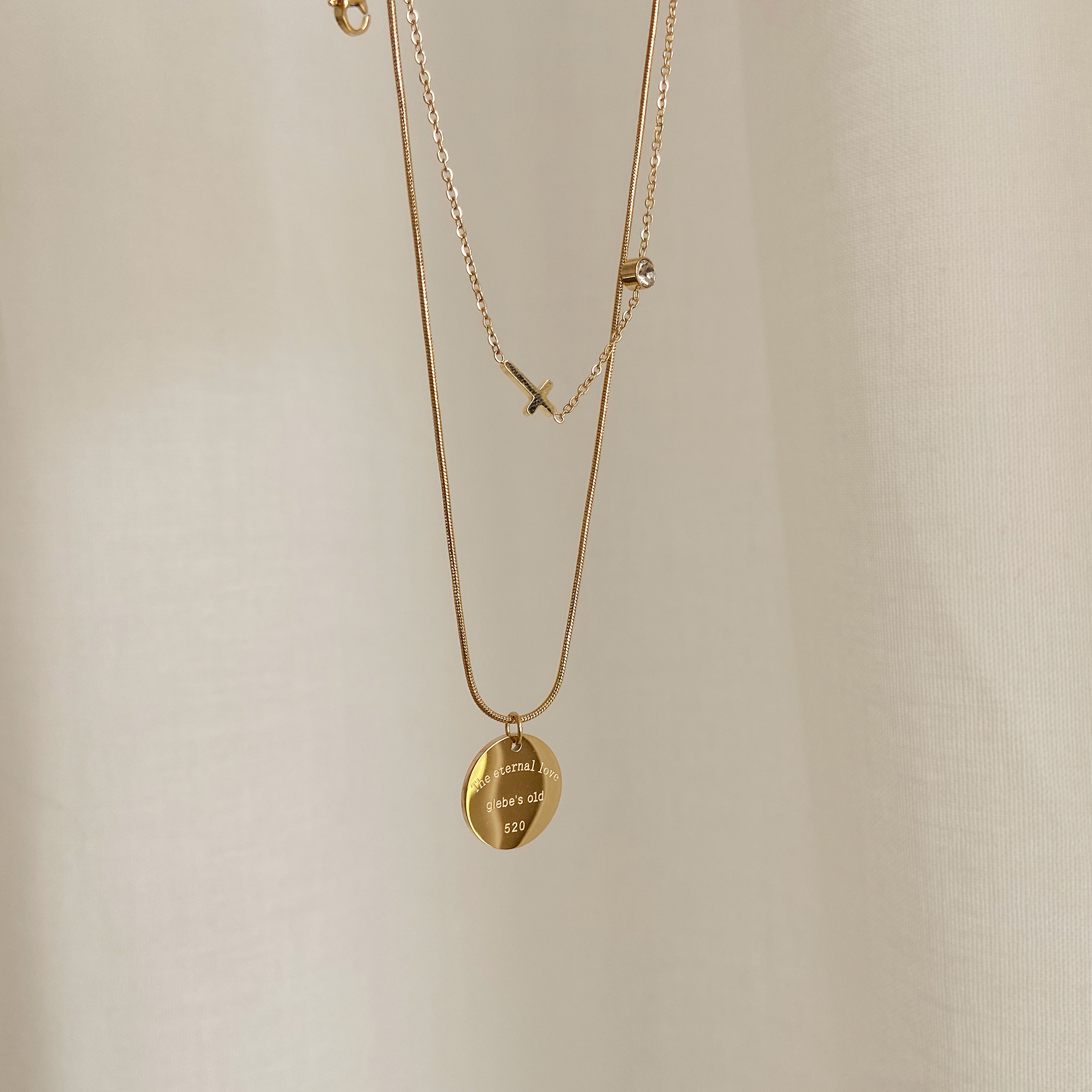 Titanium steel stacking necklace double layer does not fade ifashion female collarbone 2020 new round-brand sweater jacket