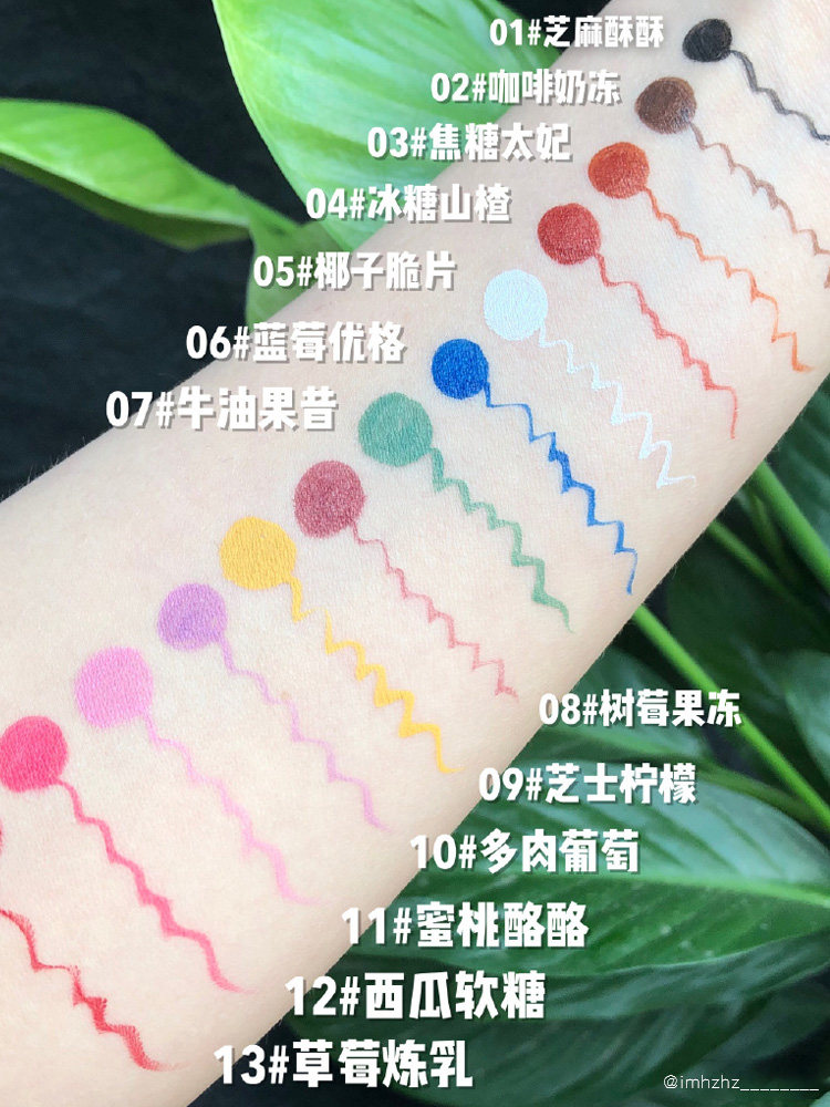01#Sesame Crisp Black 02#Coffee Panna Cotta Brown 03#Caramel Toffee Dirty Orange 04#Rock Sugar Hawthorn Retro Red 05#Coconut Chips 06#Blueberry Yogurt 07#Cow