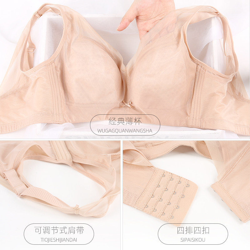 Underwear women's thin section big breasts show small big cup no steel ring bra adjustable beautiful back support anti-sagging underwear