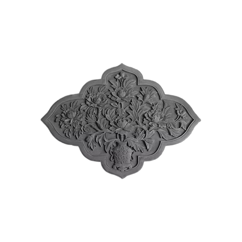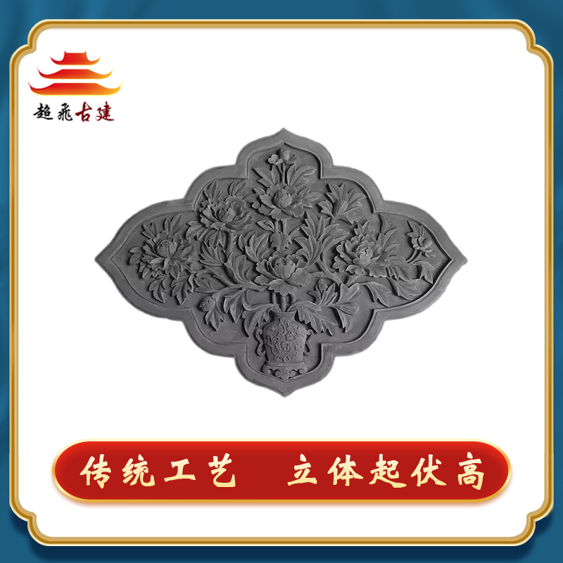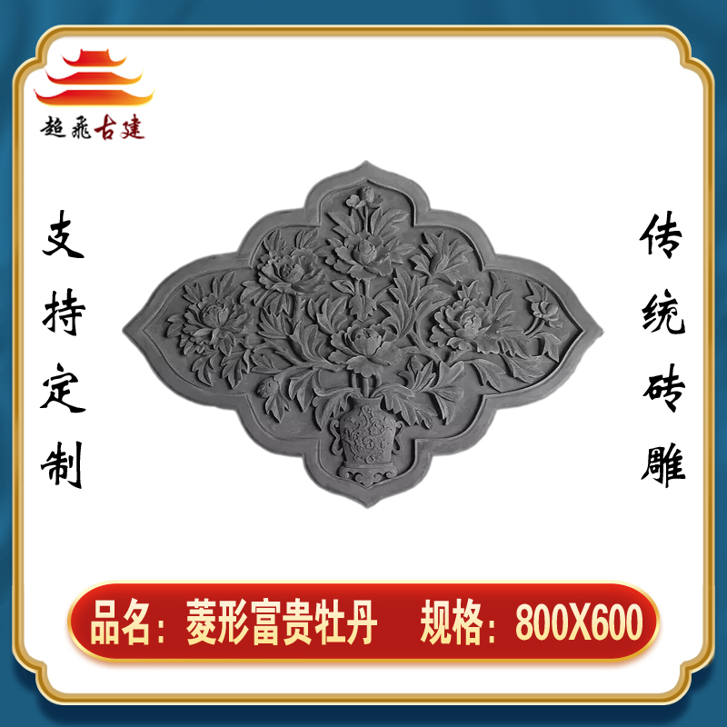 Rich peony diamond-shaped brick carving ancient garden wall decoration relief Chinese-style antique courtyard movie wall pendant