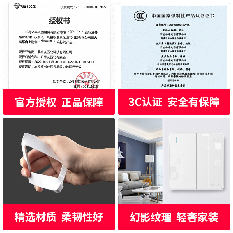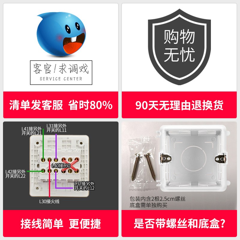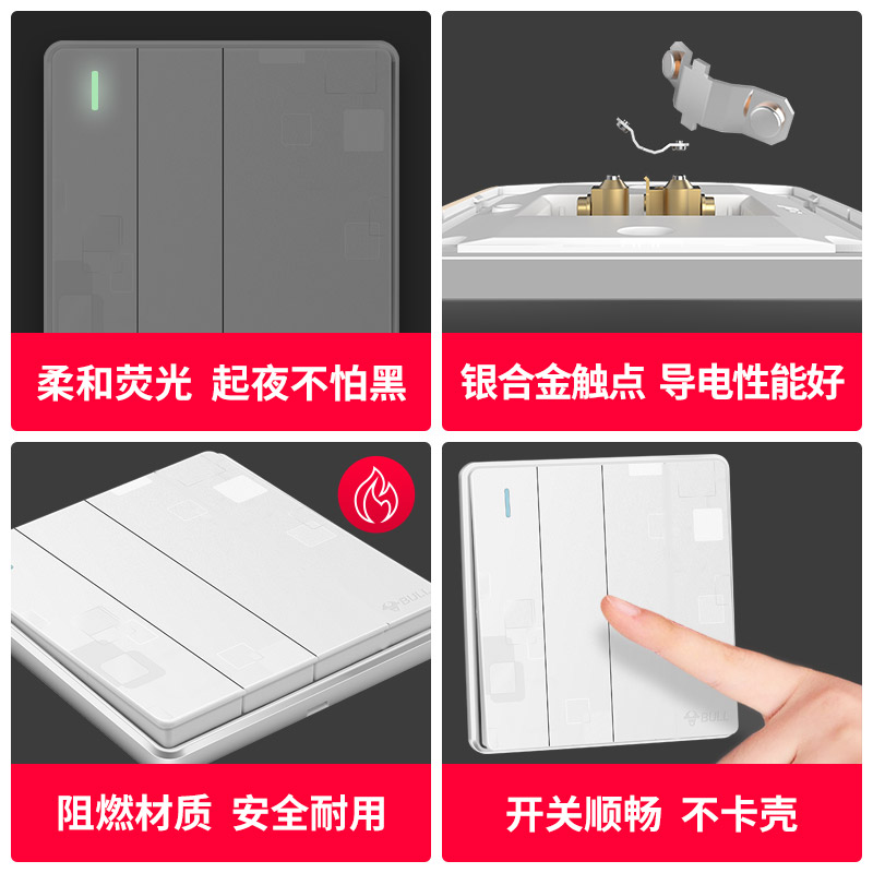 Bull three-open multi-control switch home three-position 3-triple-control mid-way plus double-control 86 type long-short button panel