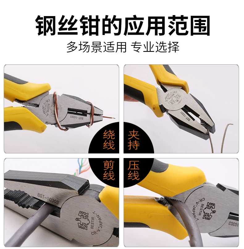 6-inch chrome vanadium steel wire pliers 10371 A 7 inch chrome vanadium steel wire pliers 10372 8-inch chrome 8 steel wire pliers 10373