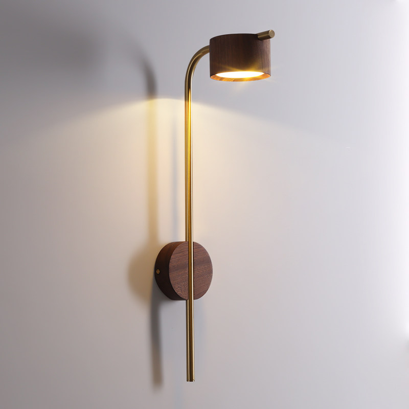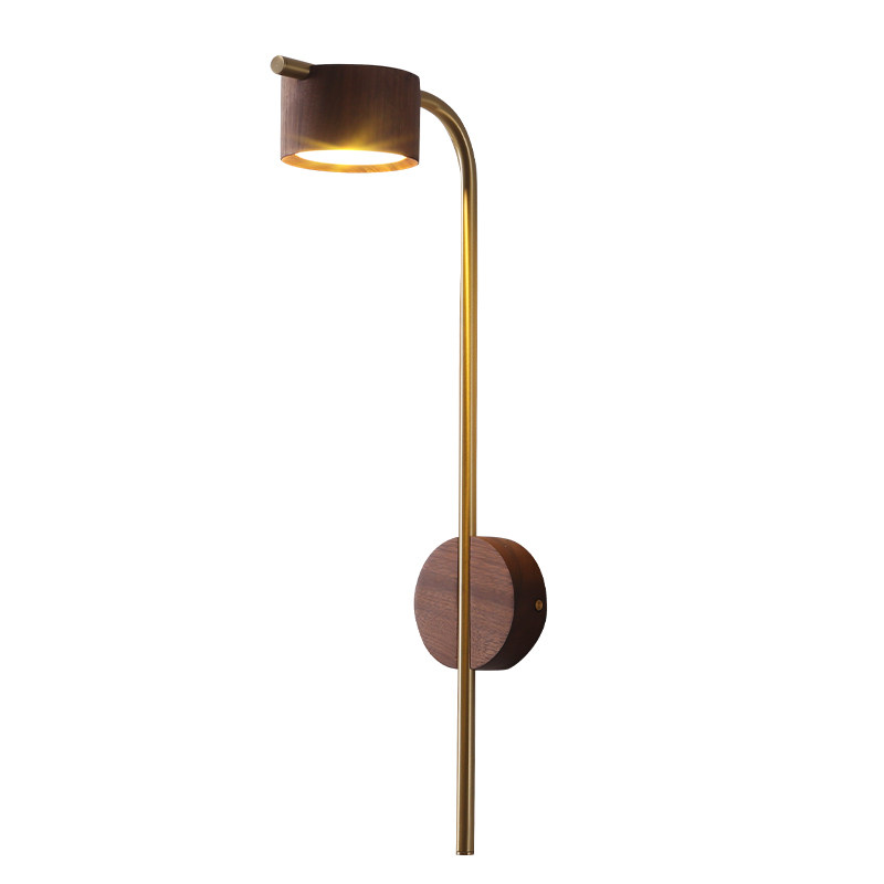 Wall Lamp Nordic Minimalist Modern Living Room Background Wall Lamp New Chinese Walnuts Wood Full Copper Light Lavish Bedroom Headboard Lamp