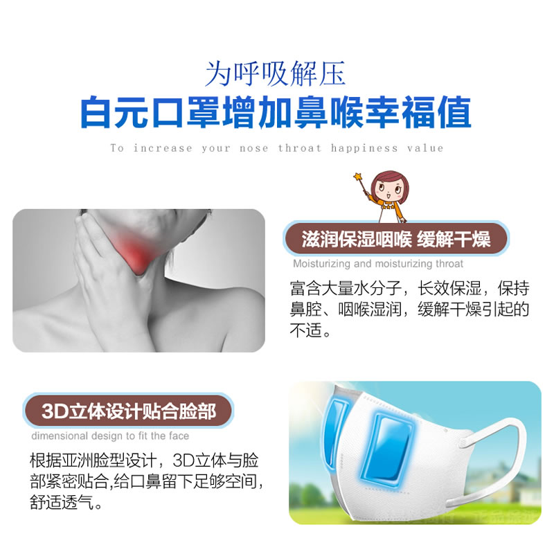 Japan mask white meta-plus wet mask anti-drying and breathable disposable nourishing throat sleep children 3 masks