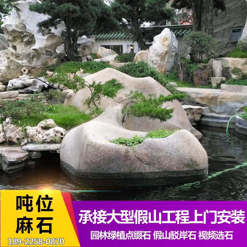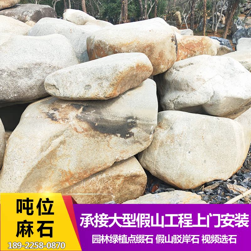 Garden Forest Landscape Stone Tonnage Hemp Stone Marble Natural White Hemp Stone Cobble River View Stone Meadow Grass Dotted