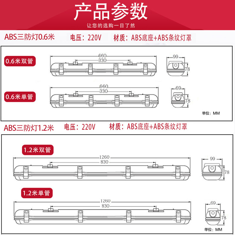 0-6 m single-tube triple anti-lamp bracket without lamp tube 0-6 m double-proof lamp holder without lamp tube 1 2 m single tube triple anti-lamp bracket without lamp tube 1 2 m double pipe triple anti-lamp bracket without lamp tube