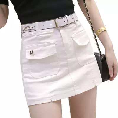 High-waisted denim miniskirt women's summer new elastic bag hip half-length skirt chic split slim anti-slip skirt pants
