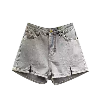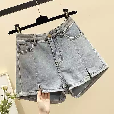 2020 summer Korean version of the big size fat mm split lock edge denim shorts women's high waist loose thin wide leg hot pants trend