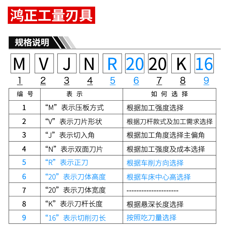 MVJNR1616H16 positive knife MVJNL1616H16 counter-knife MVJNR2020K16 positive knife MVJNL2020K16 anti-knife MVJN