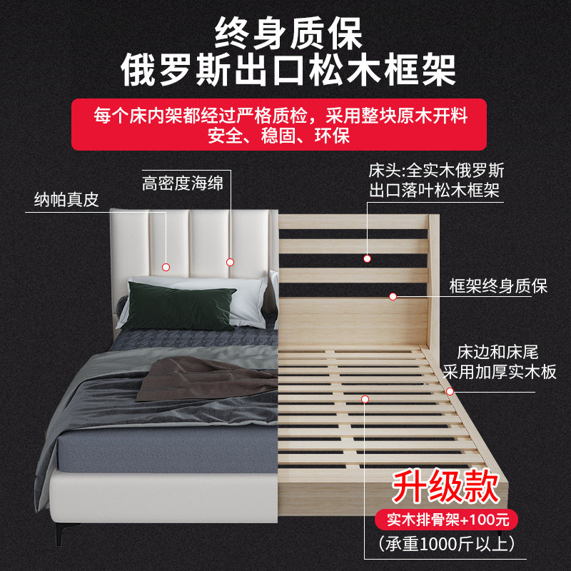 Bed modern minimalist leather 18 meters light luxury master bedroom wedding ins net red bed Guangdong Foshan furniture factory direct sales