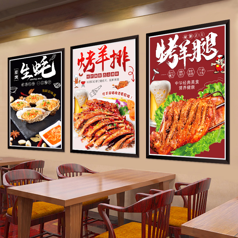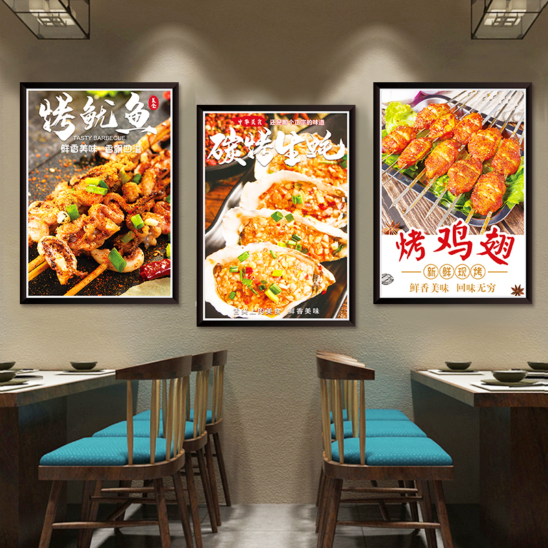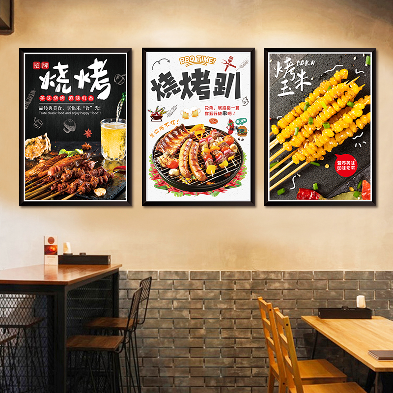 Creative barbecue shop poster stickers restaurant food stalls decorative wall stickers restaurant wall advertising pictures glass stickers