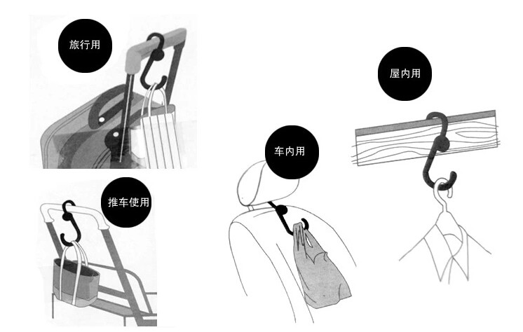 2-pack car backrest hook Baby stroller armrest rotatable universal hook Color ABS plastic S hook