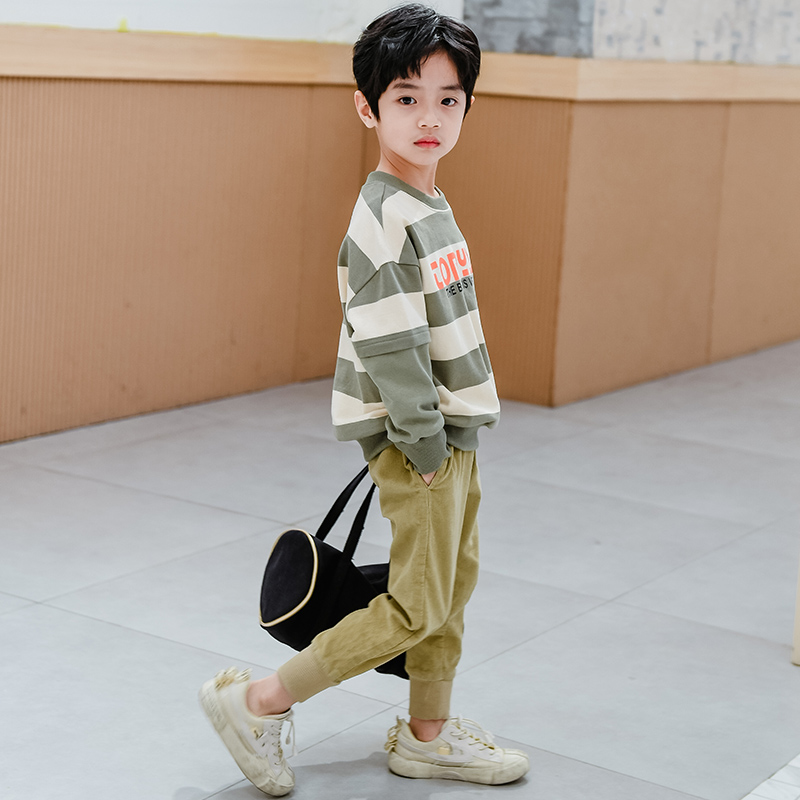 Boy fried street sweater 2021 autumn new fashion brand Foreign school children's long-sleeved pure cotton spring and autumn top handsome