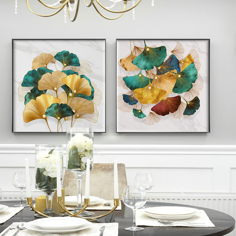 Home Great Cause Great Light Extravaganza to Door Xuanguan Decoration Painting Ginkgo Leaf Dining Hall Hung Painting Atmosphere American Living-room Background Wall Painting