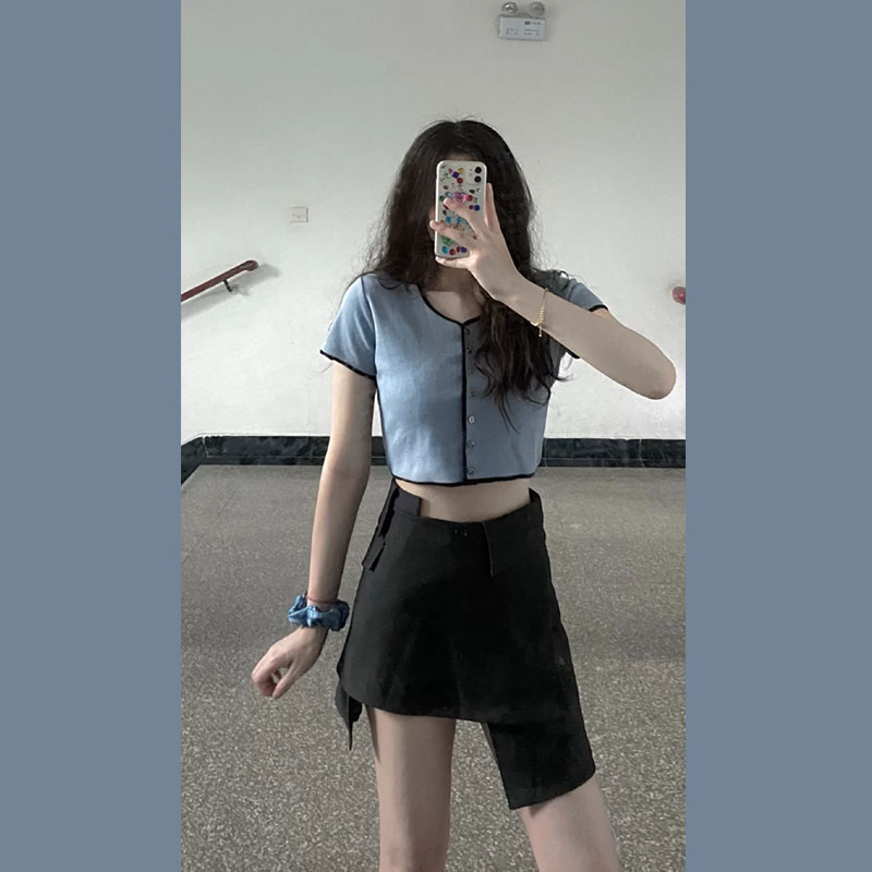 Salt can be sweet fried street suit skirt female 2022 summer new sexy cool girl wear slim skirt two-piece set