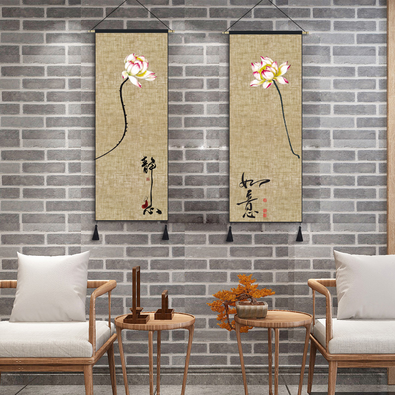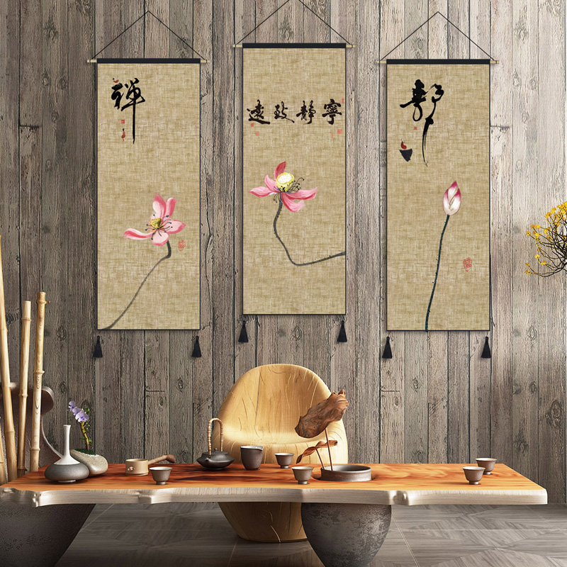 Hanging canvas art Chinese style Chinese style Zen retro living room sofa background wall tapestry hanging cloth bedroom cloth painting