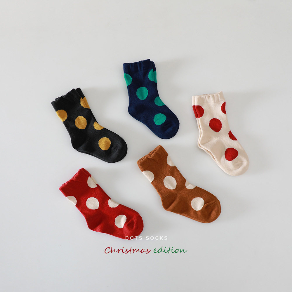 Ins autumn and winter Korean baby cute big wave point color hit color candy socks men and women baby all-match socks
