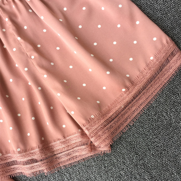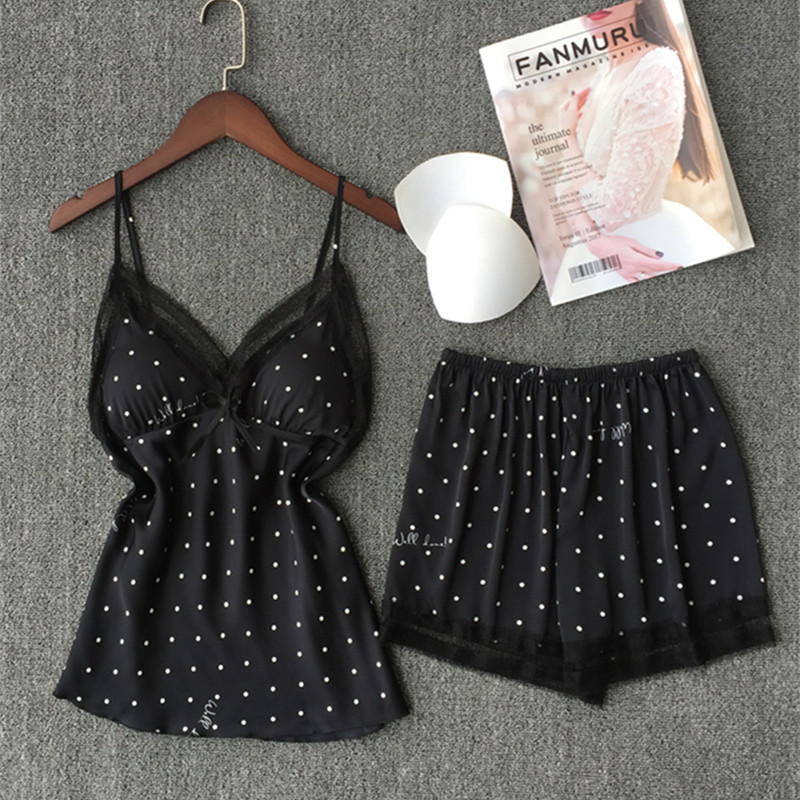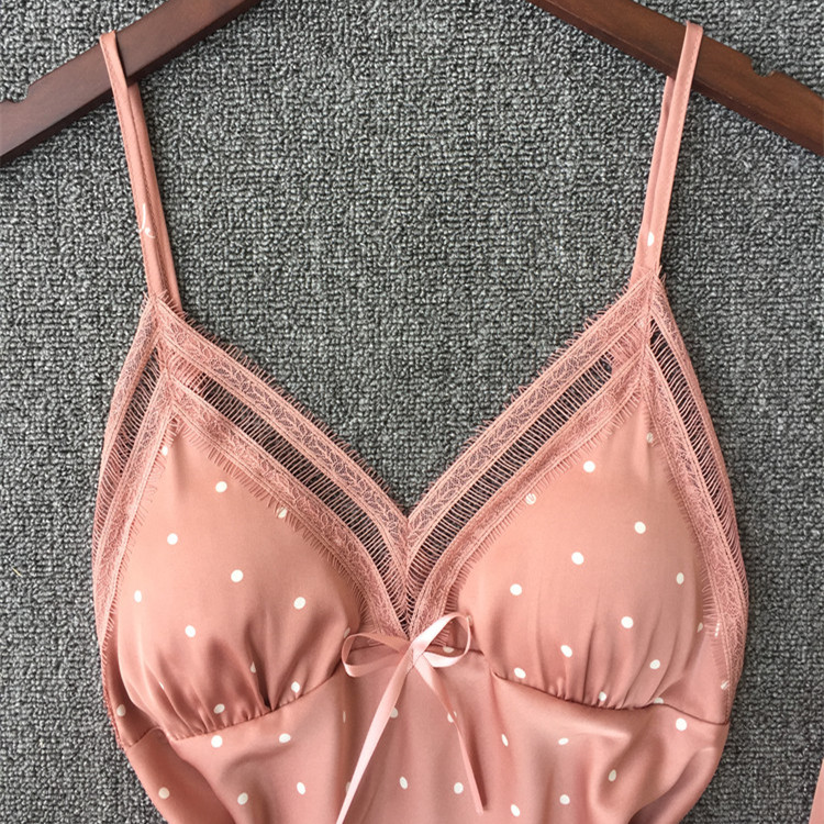 Pajamas female summer ice silk suspension shorts thin wavedots lovely chest lace private home suit