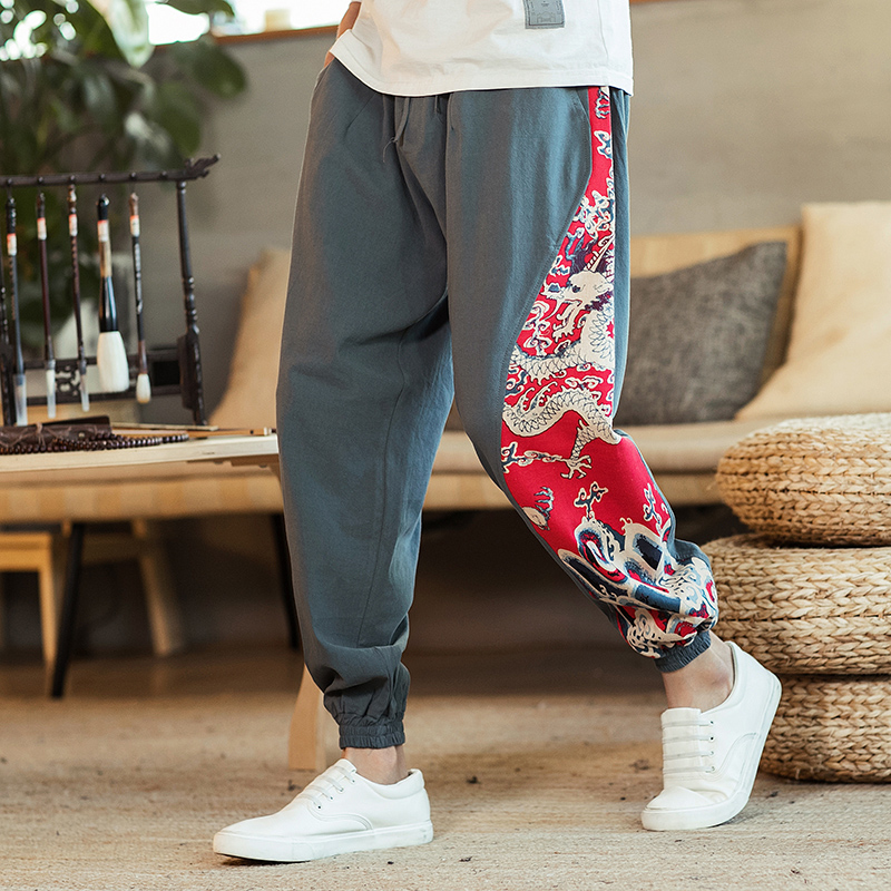 2020 New products Chinese wind nine pants men loose casual printing Harlen pants bouquet trousers