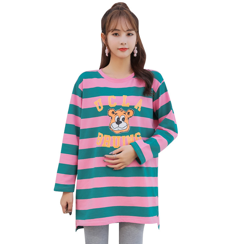 Pregnancy Woman Dress Spring Autumn early fall out of fashion Fashion Money Suit Pure Cotton Streaks Loose Pregnant Women Autumn Dress Foreign Dress