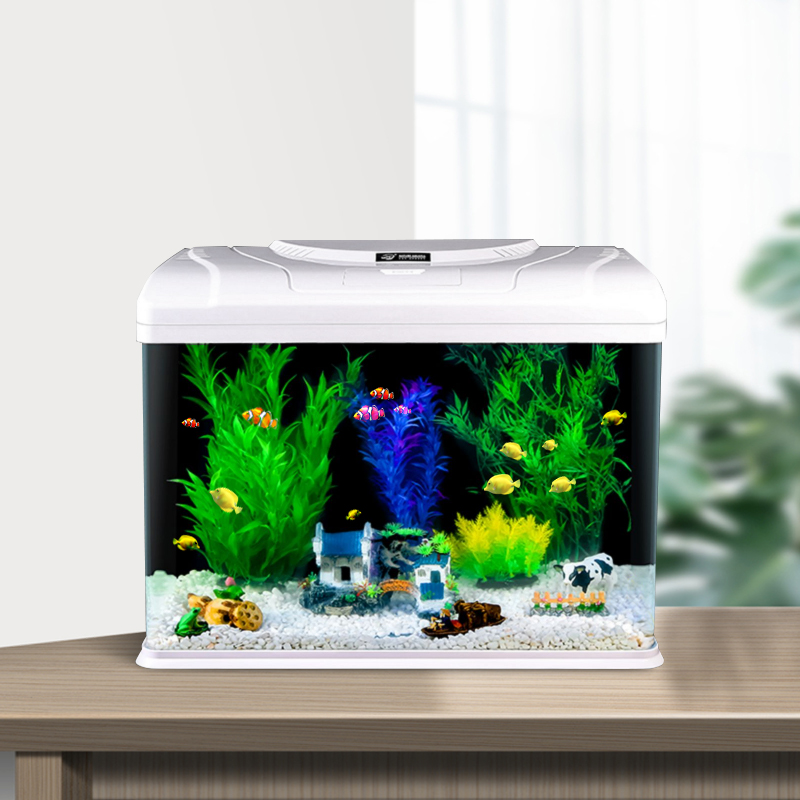 Fish Tank Living Room Office Small Mini Home Eco-View Aquarium Free Water Table Glass Gold Fish Tank