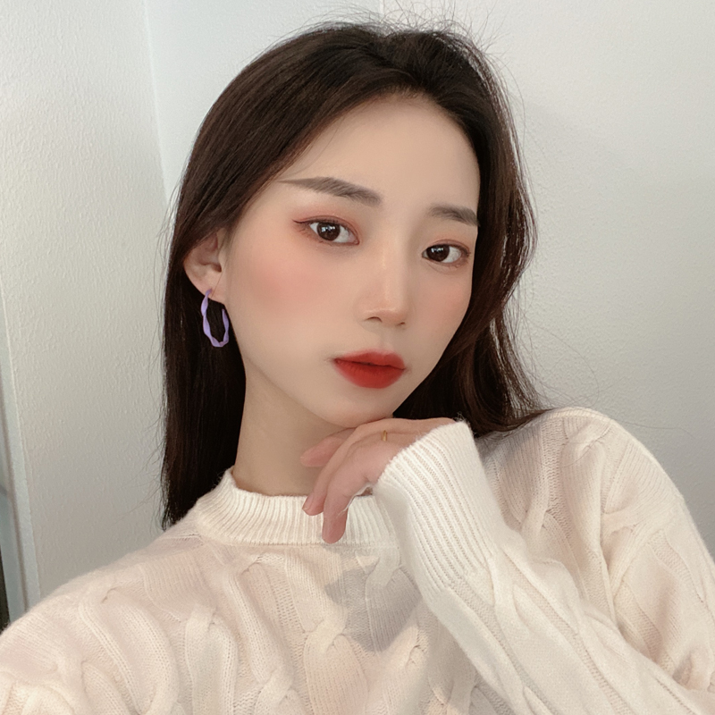 S925 silver pin Korean personality matt C word earring female temperament new earrings wave net red ins and wind earrings 414