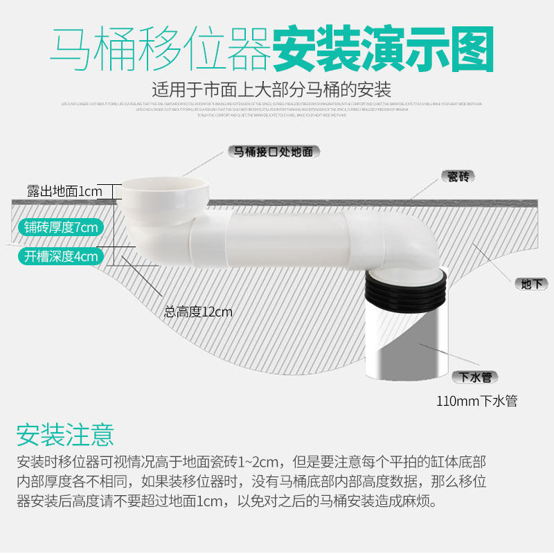 Anti-blocking channel-shaped toilet shifter flat tube adjustable displacement accessories non-digging squatting basin toilet shifter