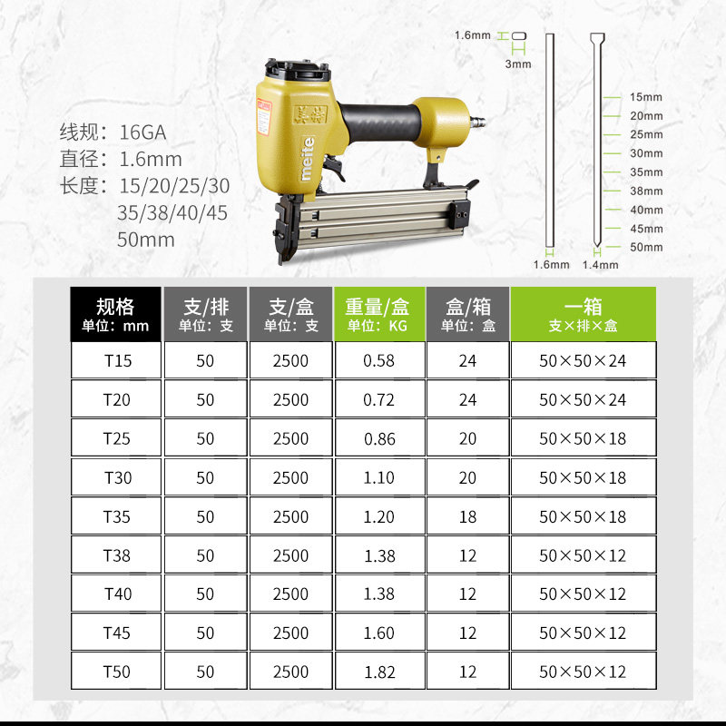 Met pneumatic nail straight nail T-type straight nail T15 T30 T38 T40 T50 stainless steel nail T-nail