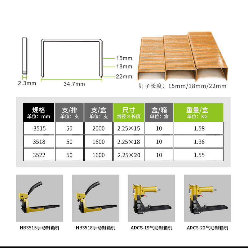 Meite carton nail gun code nail 3515 3518 3522 sealing nail manual packing pneumatic sealing machine nail