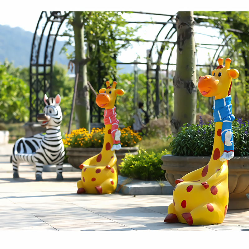 Glass Fiber Leisure Chair Kindergarten Cartoon Giraffe Sculpture Seat Outdoor Park Chair Decoration
