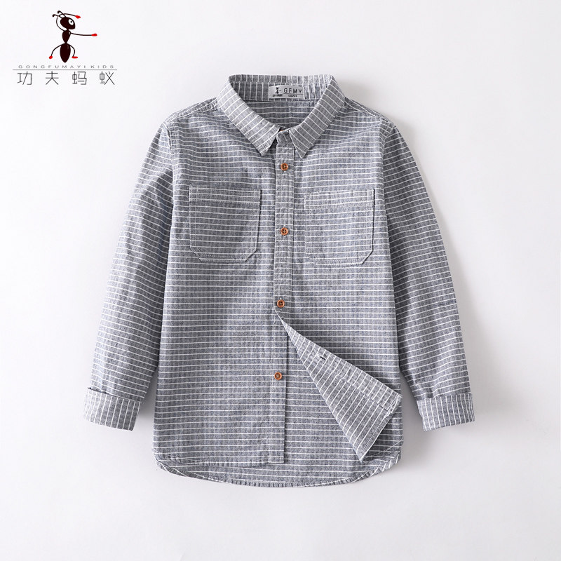 Boy plaid shirt pure cotton autumn clothing 2021 Spring and autumn style Inn Wind retro children Long sleeves shirt thin 5163