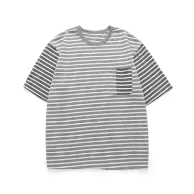 LR MADE20SS Japanese simple retro loose stripes TEE heavy cotton casual stitching short sleeve t-shirt
