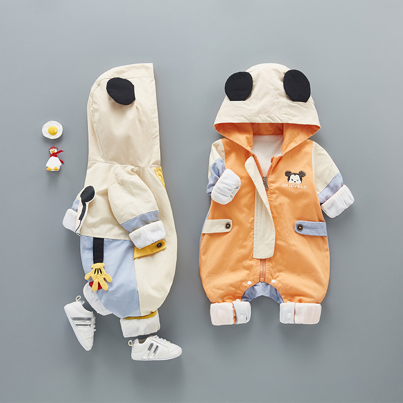 Baby autumn clothes out of double thin clothes Men and women baby jumpsuit spring and autumn jacket net red cartoon cute adorable