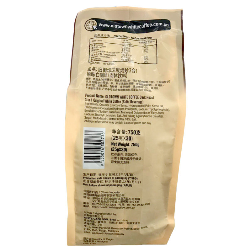 Malaysia original imported Ipoh old town white coffee roasted original three-in-one instant coffee powder bag