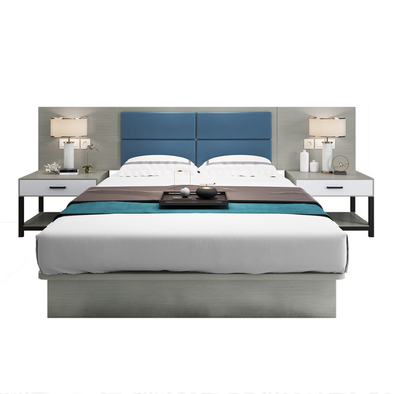 Hotel furniture bed standard room Full set hotel double bed Apartment bed and breakfast Single room dedicated convenient hotel bed customization