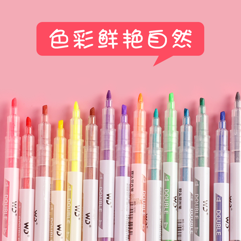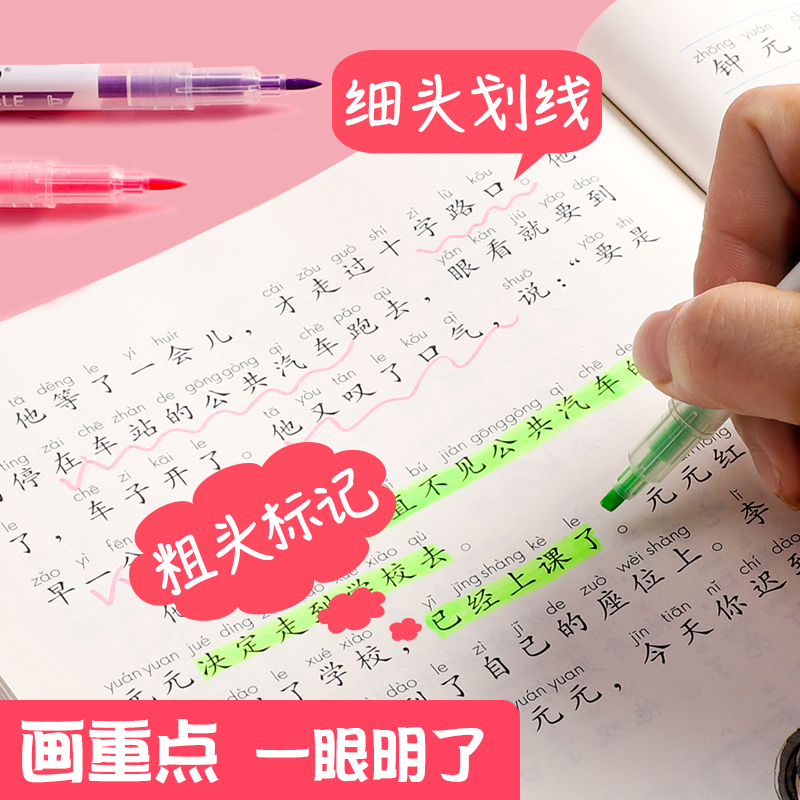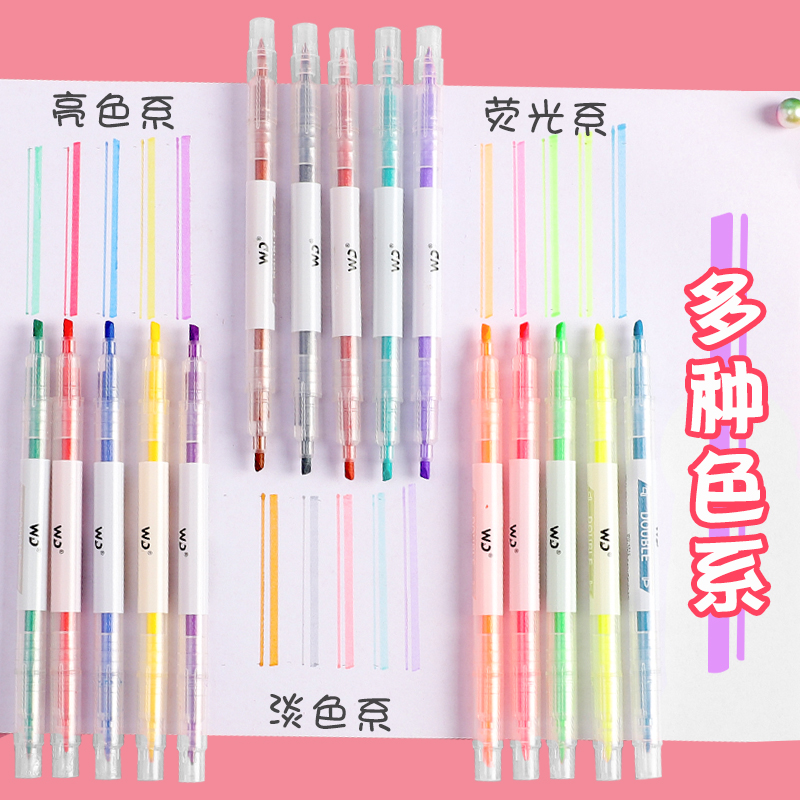 Fluorescent Marker Pen Students With Pale Color Series Focus Double Head Two Colors set of colored minimalist notes pen