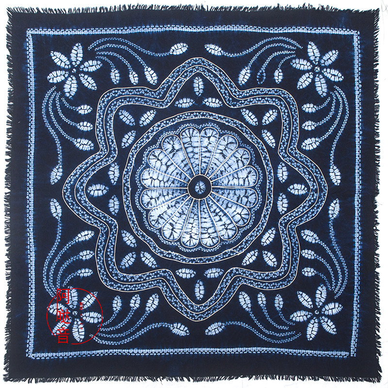 Yunnan Dali Bai ethnic handmade Dyed Blue Dyed Pure Cotton Dining Mat Table Tablecloth Office Household Guest House Decoration for Bull Flowers